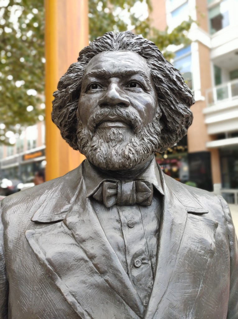 Douglass’ complexity even took the shape of fiction: In the aftermath of police action shootings surrounding the death of George Floyd in 2020, monuments of Lincoln became targeted for protest or removal. A newsclip I saw of one such protest, a young Black woman seeming to want to damage the Lincoln Memorial in Washington encountered an actor portraying Frederick Douglass. While “Douglass” was trying to calm her down, the woman repeatedly yelled in his face: “Why are you protecting him? Why are you protecting him?”