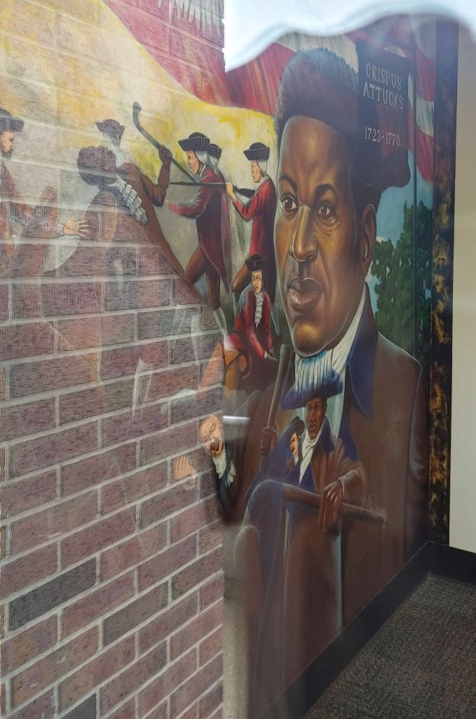 Among the five colonists killed was Crispus Attucks, a Black and Native American merchant seaman. A freeman. Many historians say that Attucks was the first fatality of the Massacre and, as such, a symbol of America’s racial irony. Schools, statues and community centers named for Crispus Attucks through the U.S. frequently point out that a Black was the first to die for the freedom of a country in which he could not be free.